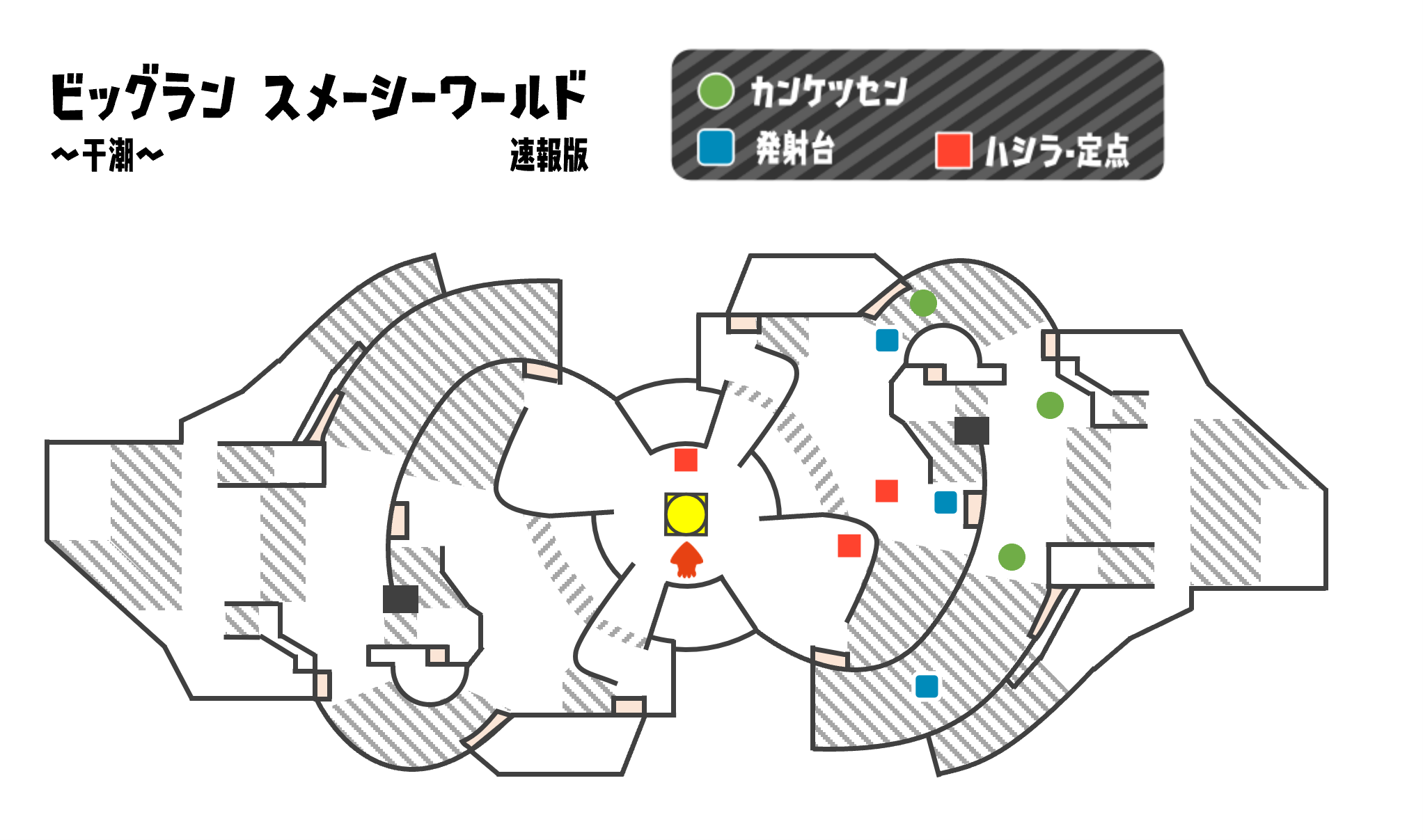 カンケツセンが関わる状況や干潮限定の特殊な状況は発生しない模様。また、通常は干潮では発生しないはずのラッシュ、グリル発進が干潮でも発生する。